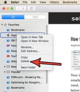 2. Right-click (or control-click) on the favorite you want to delete.